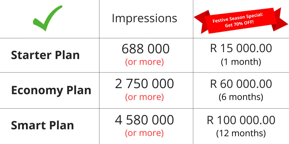 Embark on your advertising journey today by selecting your desired plan and target country below. Please note that your banner size should adhere to the specified dimensions of 1370 x 360 pixels and 440 x 440 pixels.