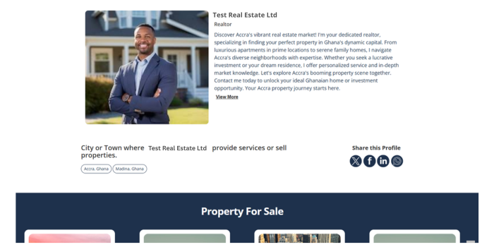 You are now ready to log in to your account, create your professional profile, and then list properties for sale.